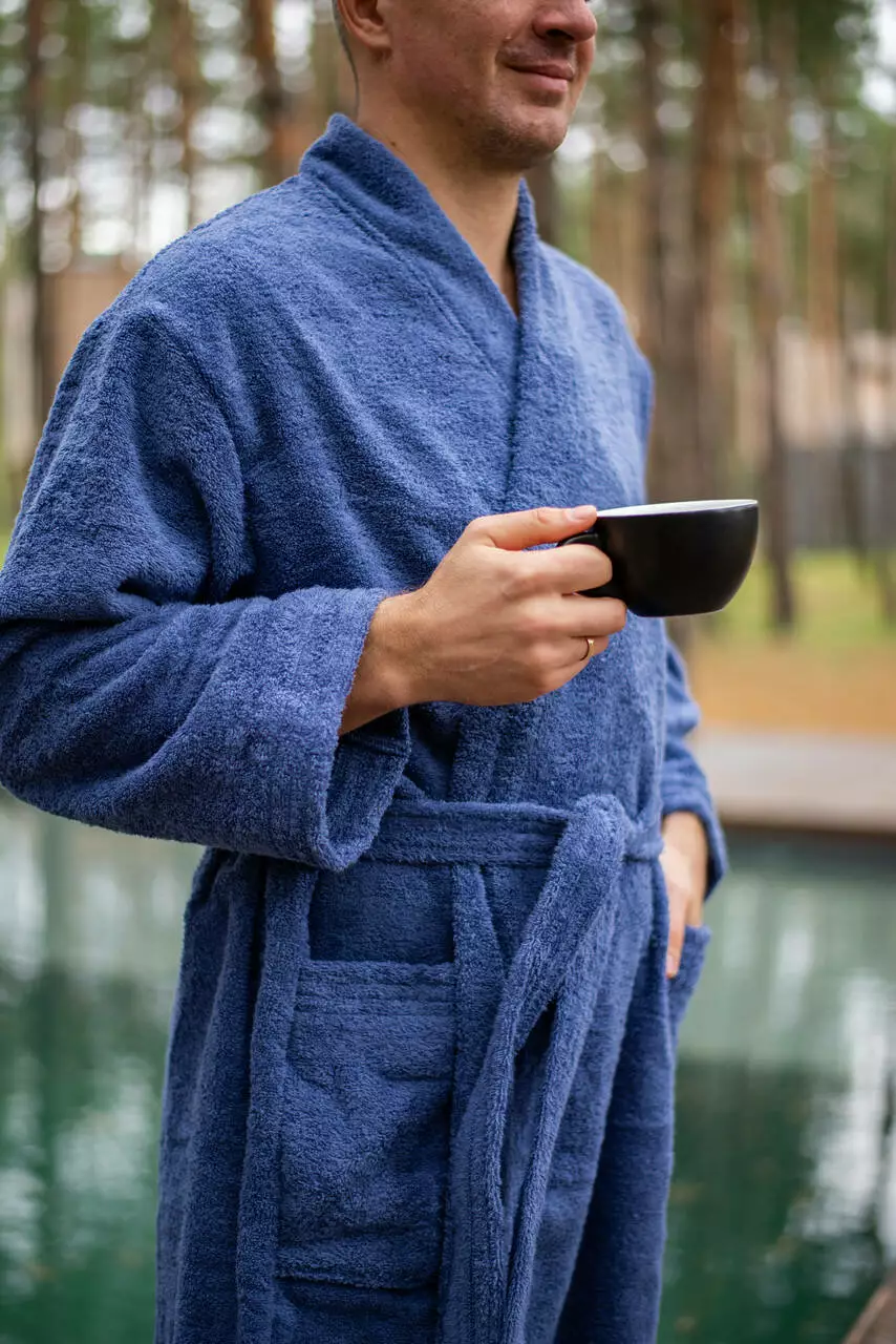 Халат махровий "Кімоно" джинс з поясом, розмір XL. Халат виготовлено з 100% високоякісної бавовни. Ідеально підійде для SPA центрів, салонів краси, готелів, спортивних баз.