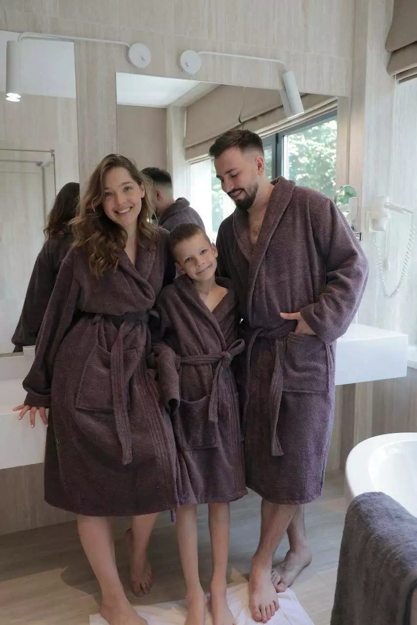 Халат виготовлено з 100% бавовни на сучасних ткацьких верстатах. Перед використанням, халат потрібно випрати при температурі 40°С. Рекомендується машинна сушка. Вона надасть халату пухнастість і м'якість. Всі символи по догляду вказані на вшивній етикетці.
