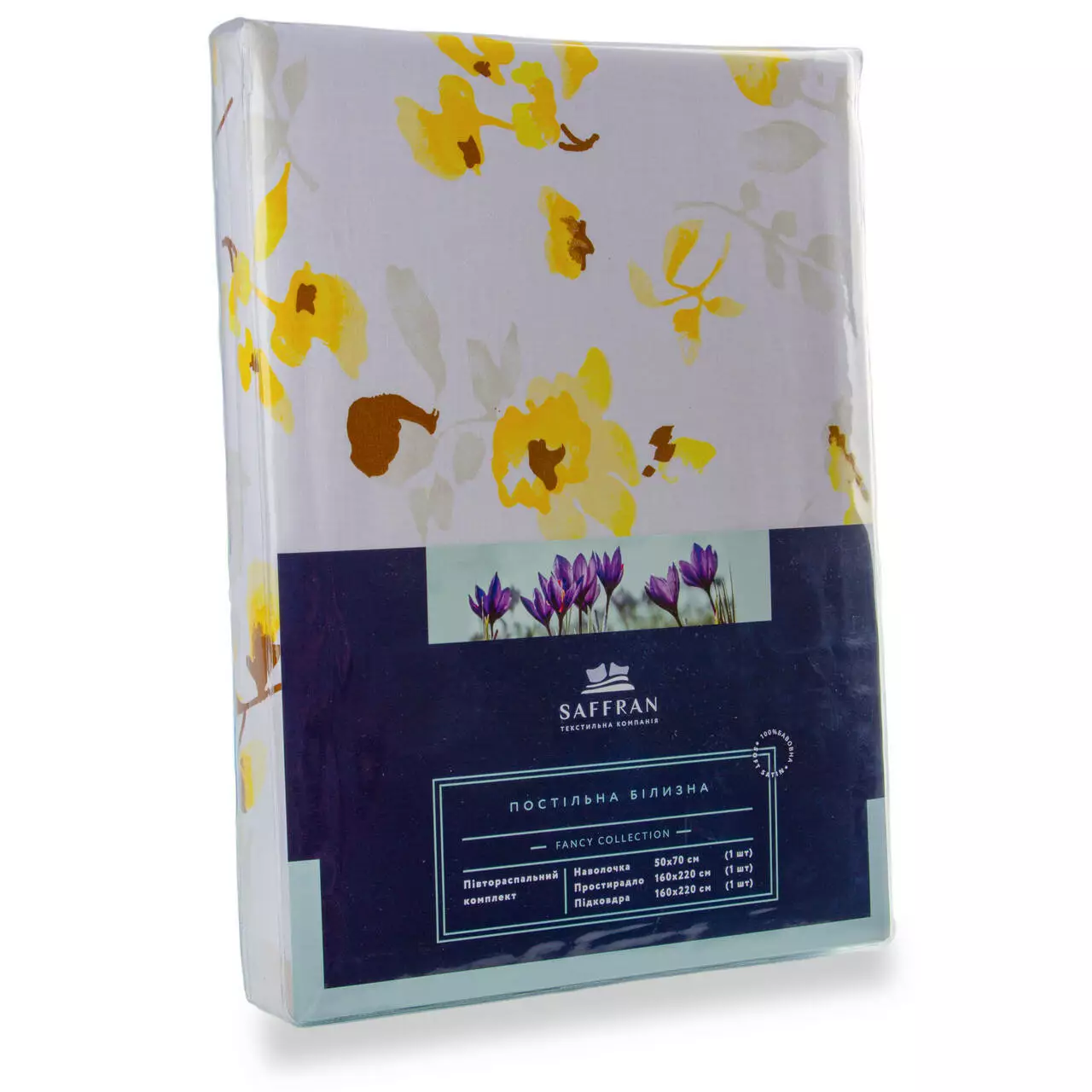 | Комплектація: | підковдра 200х220см-1шт, простирадло 220х240см-1шт, наволочка 50х70см-2шт |