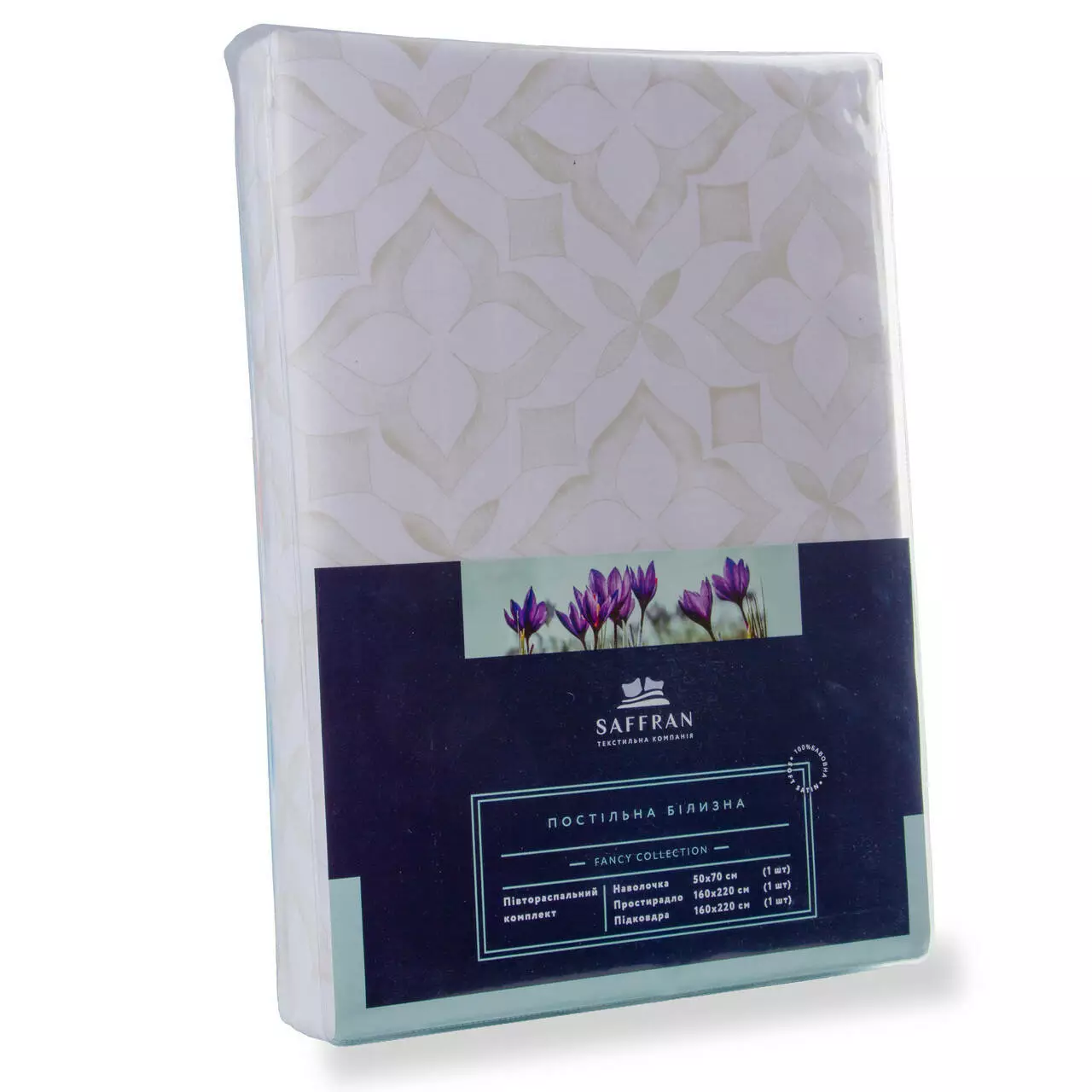 | Комплектація: | підковдра 200х220см-1шт, простирадло 220х240см-1шт, наволочка 50х70см-2шт |