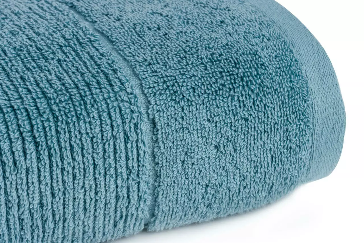 Рушник махровий NOBLE Преміум" з декоративним бордюром, колір морська хвиля. Рушник виготовлено з 100% високоякісної бавовни, гребінна пряжа. Край рушника з двох сторін прикрашений дизайнерським бордюром шириною 9 см. Він не линяє, стійкий до стирання і прання. Ідеально підійде для SPA центрів, салонів краси, готелів, спортивних баз. Цей рушник є найкращим варіантом для подарунку Вашим близьким чи знайомим.