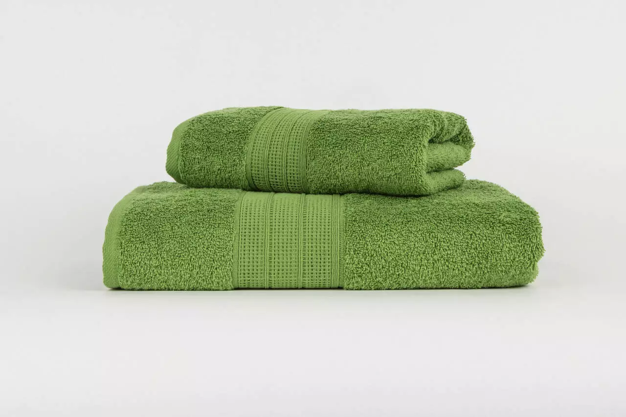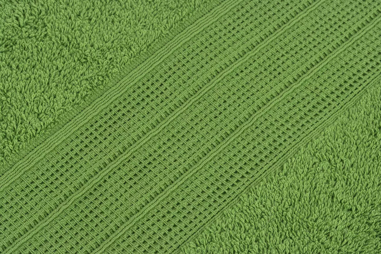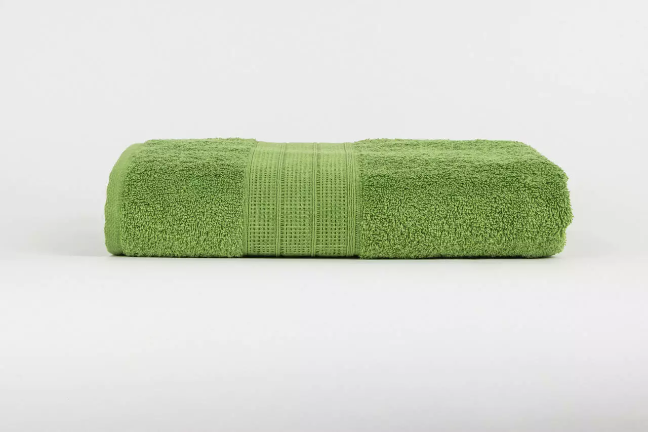 Махровий рушник однотонний CLASSIC з декоративним бордюром, колір трав'яний. Рушник виготовлено з 100% високоякісної бавовни. Край рушника з однієї сторони прикрашений дизайнерським бордюром шириною 9 см. Він не линяє, стійкий до стирання і прання. Ідеально підійде для SPA центрів, салонів краси, готелів, спортивних баз. Цей рушник є найкращим варіантом для подарунку Вашим близьким чи знайомим.
