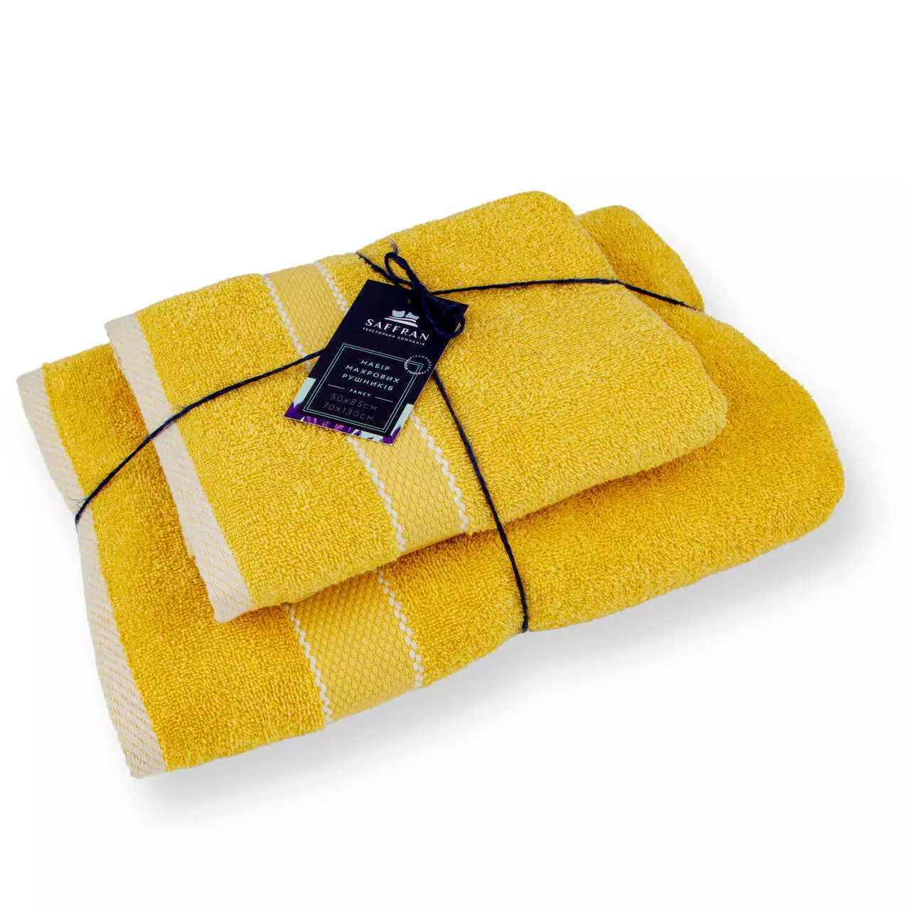Рушник махровий з декоративним бордюром, колір гірчичний. Рушник виготовлено з 100% високоякісної бавовни. Край рушника з двох сторін прикрашений дизайнерським бордюром. Він не линяє, стійкий до стирання і прання. Ідеально підійде для SPA центрів, салонів краси, готелів, спортивних баз. Даний рушник є найкращим варіантом для подарунку Вашим близьким чи знайомим.