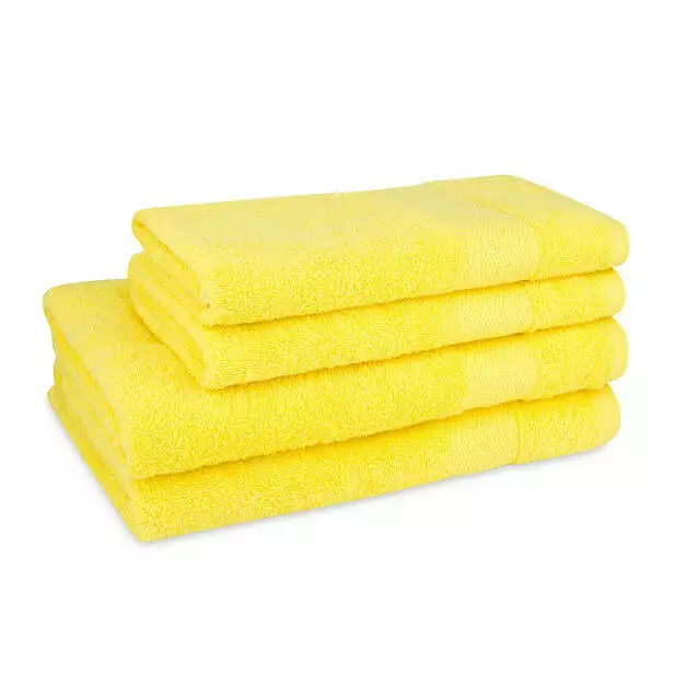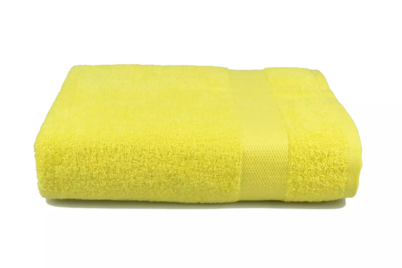 Рушник махровий з декоративним бордюром, колір жовтий. Це 100% натуральний рушник з високою і м'якою махровою петлею. Сучасний бордюр рушника має ширину 5 см. Рушник не линяє, стійкий до стирання і прання. Цей рушник є чудовим варіантом для домашнього використання, салонів краси і кращим співвідношенням ціна-якість.